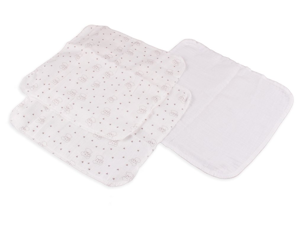 Jemné, praktické mušelínové ubrousky Linteo Baby. Vyrobeny ze 100% bavlny, která je mimořádně jemná a vzdušná. Mušelín je navíc považován za nejčistší tkaninu, takže jsou ubrousky vhodné i pro tu nejcitlivější pokožku těch nejmenších – nemusíte se obávat podráždění. Díky své praktické velikosti jsou ideálním pomocníkem na kratší i delší cesty, možností využití je nespočet. Perfektně poslouží místo bryndáčku, jako jemná žíňka nebo podložka pod hlavičku miminka. V balení najdete jeden kus s jemným potiskem medvídku a dva kusy v čistě bílé barvě.